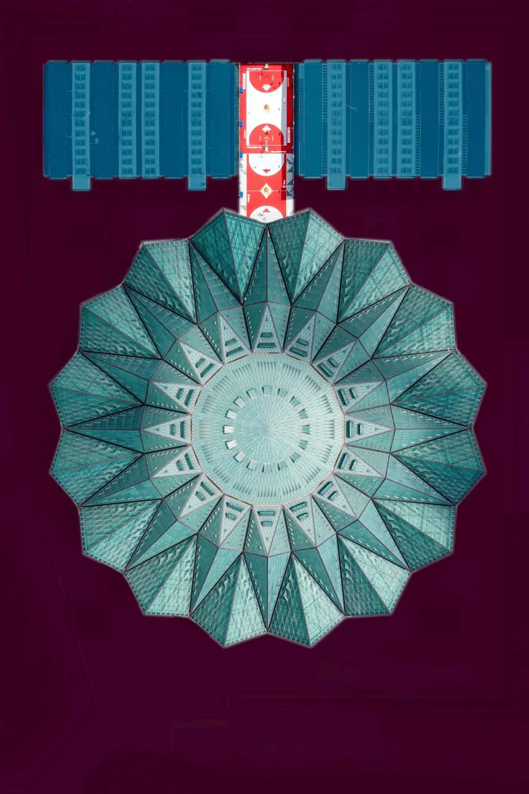 这组名为《湾区之花》的摄影作品,以航拍视角捕捉粤港澳大湾区九座核心城市的代表性建筑,将其凝固为九朵形态各异的“花”。“花”既是自然的生命象征,亦是中华文化中被反复吟咏的经典意象。钟致颖以“花”为创作核心意象,不仅是形式上的巧妙比拟,更意在对大湾区城市群的生命力与整体感进行艺术诠释。
