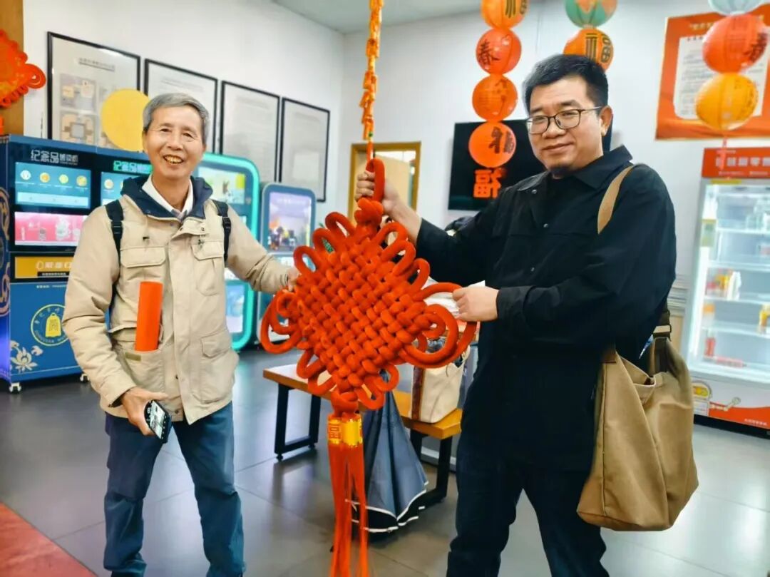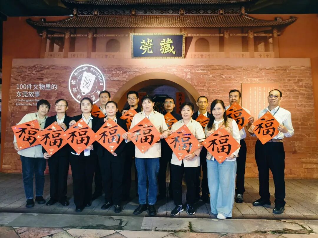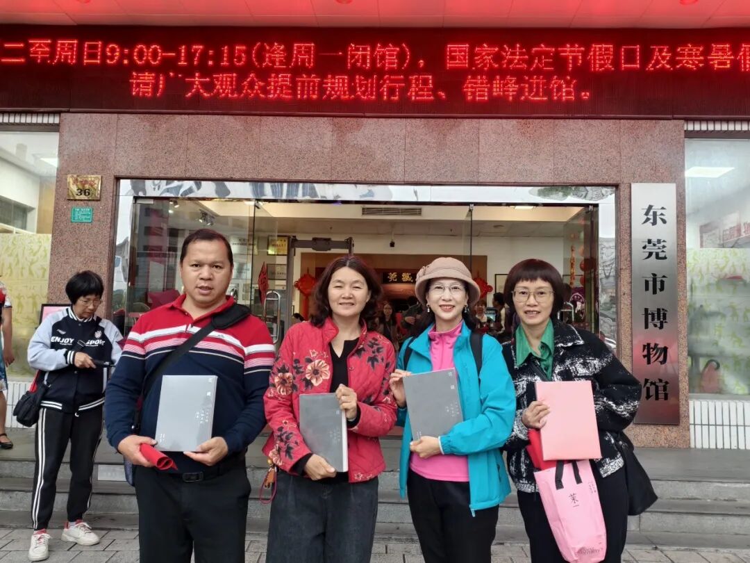 在闭馆前的最后时刻,一幅极具象征意味的画面被镜头永久定格:莞城摄影协会会长钟致颖带领一行影友,与博物馆馆长李历松共同完成了一个庄重的仪式——作为最后一批参观者,与博物馆全体同仁合影留念,并由作为最后一名参观群众的莞城摄协会员张镜新从李馆长手中接过一只巨大的中国结,双方许诺将于新馆开馆之日将此结交回博物馆。这一“结”,既是对旧馆时代的深情系挽,亦是双方关于“新馆再见”这一承诺的视觉契约。绳结缠绕,恰如三年来双方合作谱写的文化经纬,疏密有致,情谊绵长。