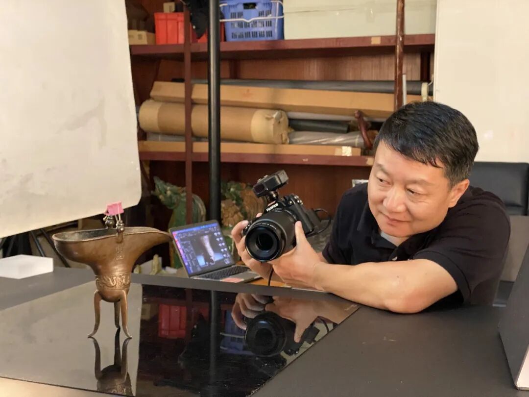 钟致颖会长在博物馆库房拍摄珍贵的藏品